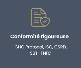 Élaboration de bilans carbone selon le GHG Protocol, ISO 14064-1, ISO 14067 (produit), intégration des objectifs SBTi (Science Based Targets) et accompagnement à la conformité avec la CSRD et la norme ESRS E1 – Climat.